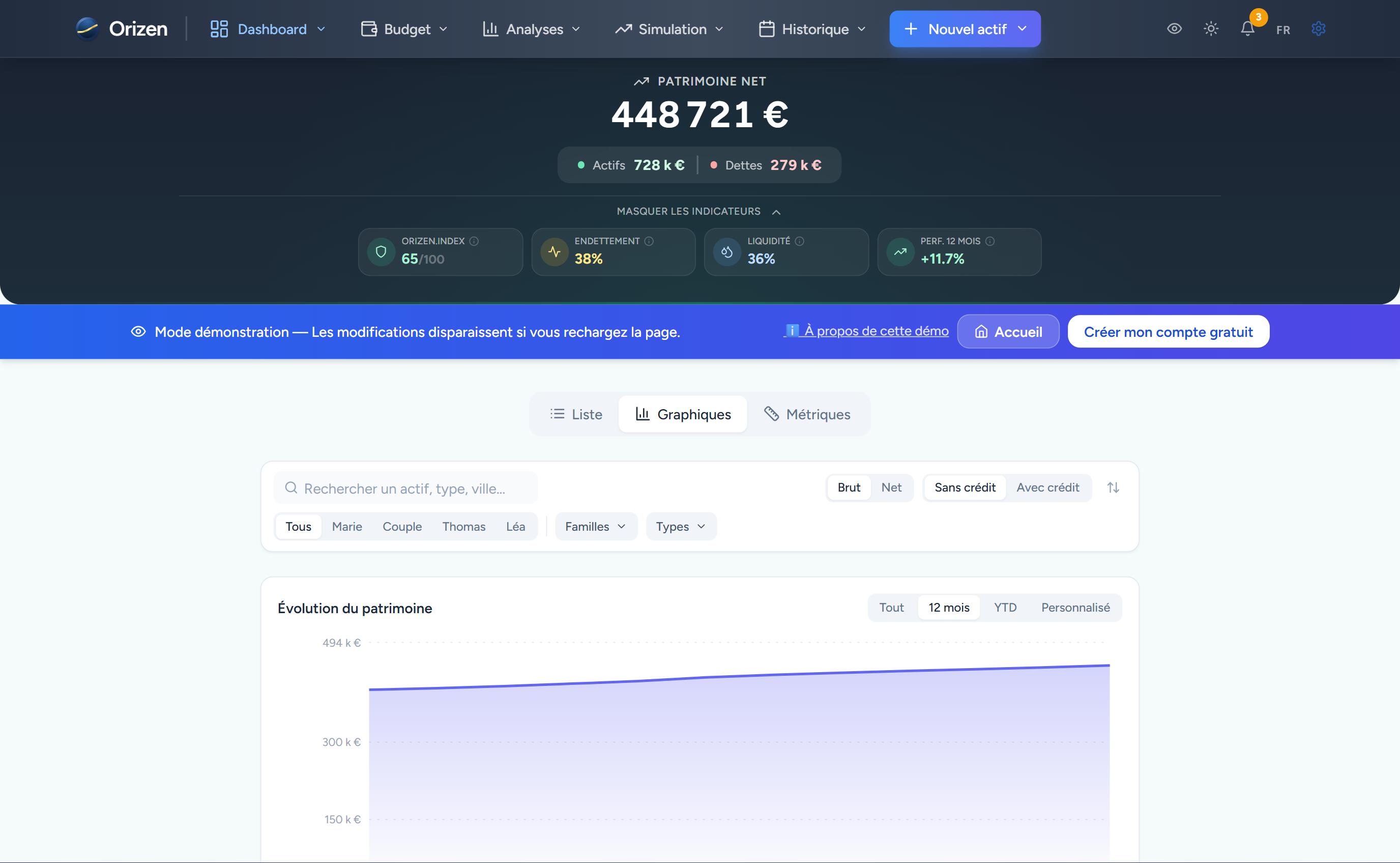 Tous vos biens et vos dettes réunis en un seul endroit, pour enfin voir l'ensemble.